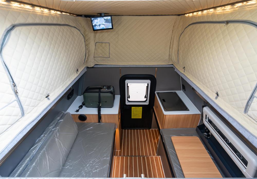 - Climate Control: Add a 5KW diesel heater or portable air conditioner to handle extreme weather conditions.